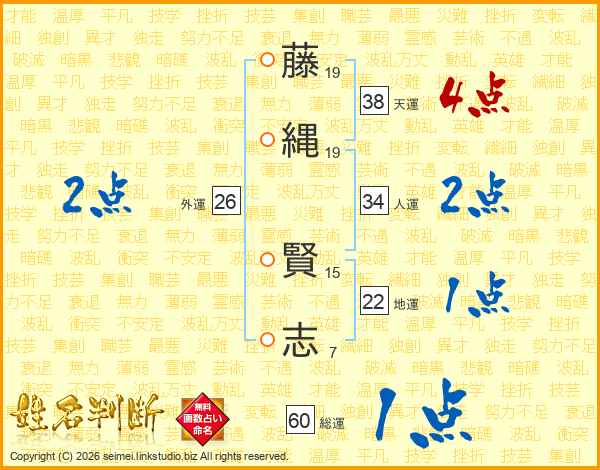 藤(19画)縄(19画) 賢(15画)志(7画)