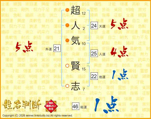 超人気賢志さんの天運は24画の5点!