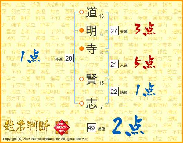 道明寺賢志さんの総運は49画の2点!