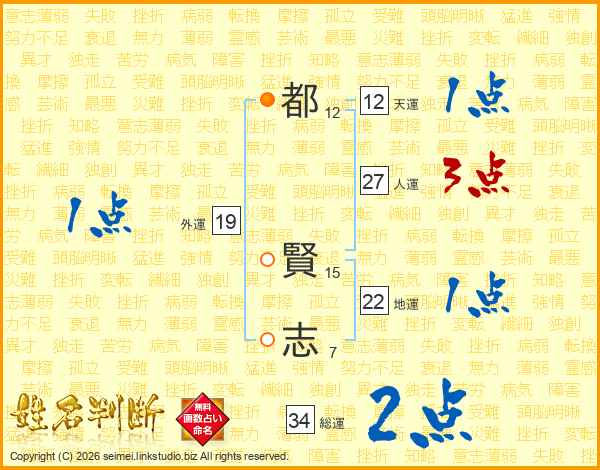 画数の奇数(○陽)と偶数(●陰)の配列で吉凶を占います。どちらかにかたよる名前は大凶名で避ける必要があります。画数の奇数偶数。