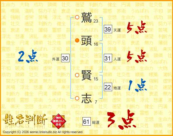 鷲頭賢志さんの天運は39画の5点!