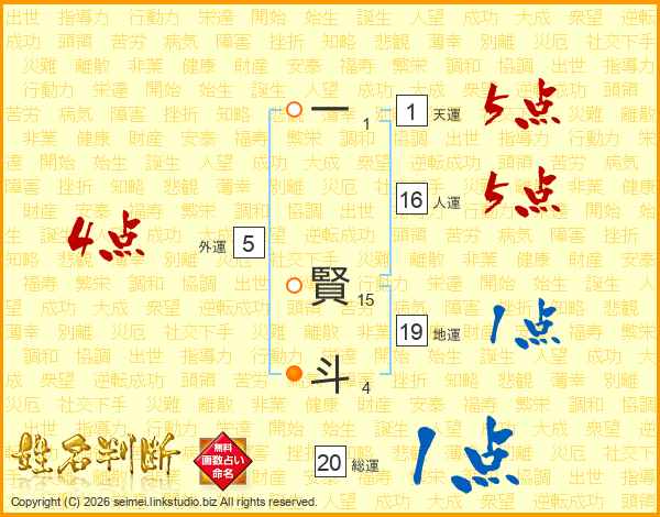 一賢斗さんの総運は20画の1点!