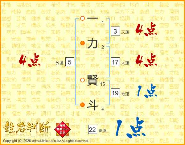 一力賢斗さんの総運は22画の1点!