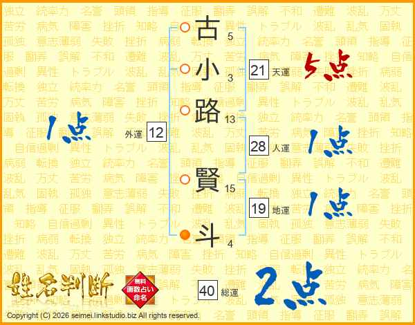 古小路賢斗さんの総運は40画の2点!