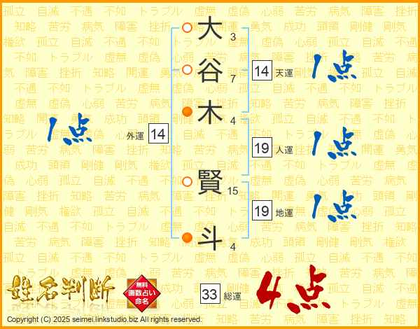 大(3画)谷(7画)木(4画) 賢(15画)斗(4画)