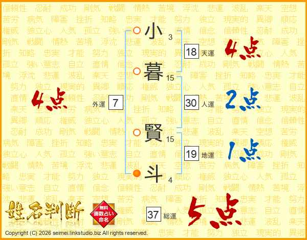 小(3画)暮(15画) 賢(15画)斗(4画)