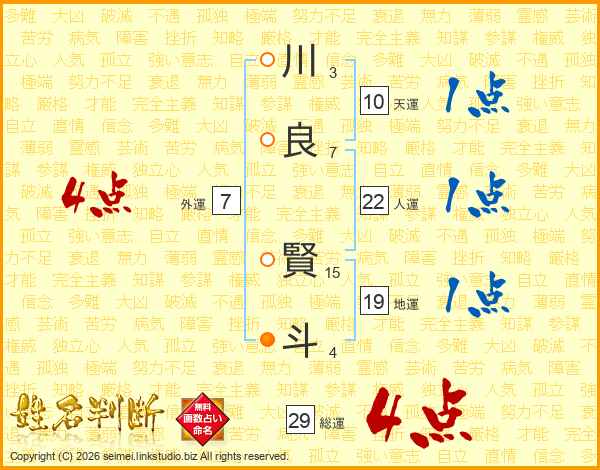 川良賢斗さんの総運は29画の4点!