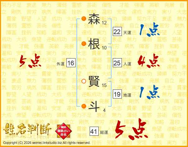 森根賢斗さんの総運は41画の5点!