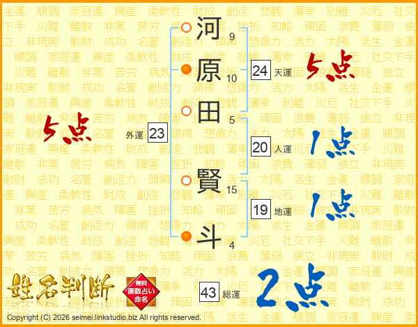 河原田賢斗さんの総運は43画の2点!