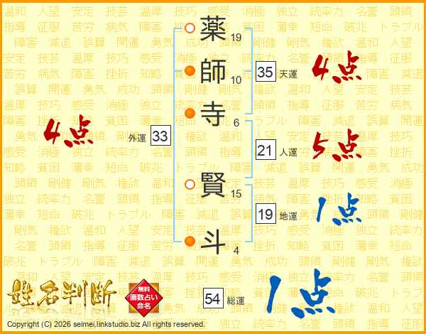 薬師寺賢斗さんの外運は33画の4点!