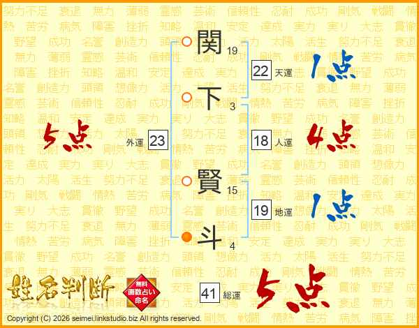 関下賢斗さんの総運は41画の5点!
