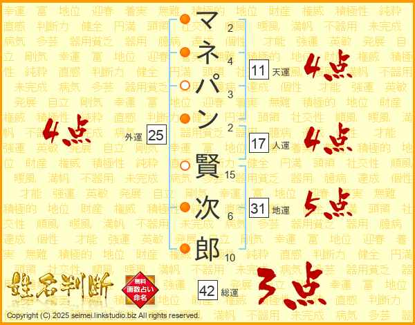マネパン賢次郎さんの地運は31画の5点!