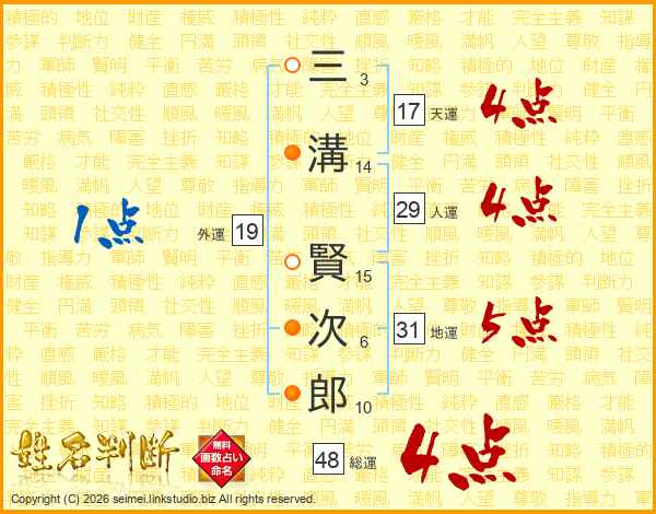 三(3画)溝(14画) 賢(15画)次(6画)郎(10画)