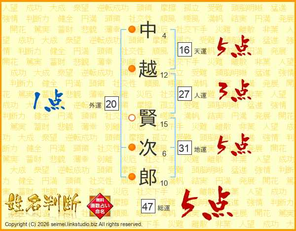 中越賢次郎さんの総運は47画の5点!