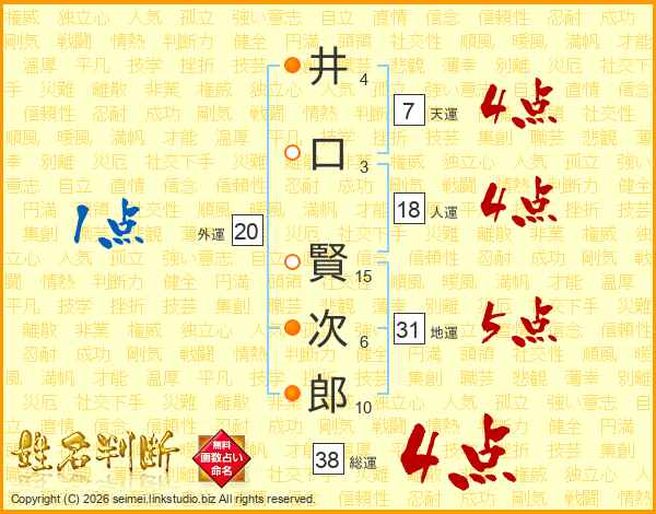 井口賢次郎さんの総運は38画の4点!