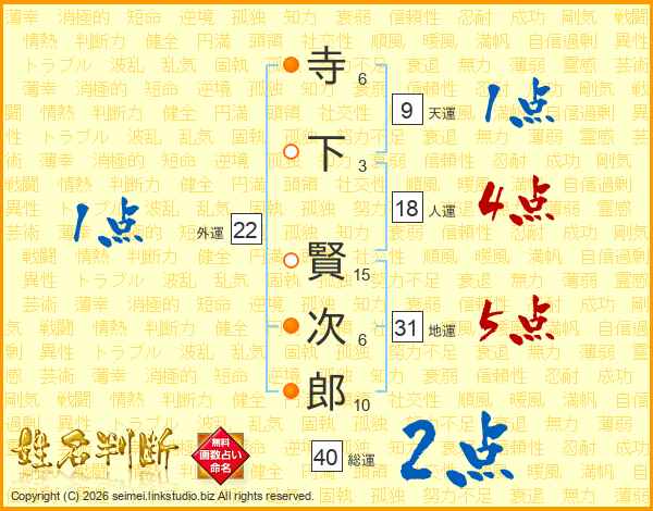 寺(6画)下(3画) 賢(15画)次(6画)郎(10画)