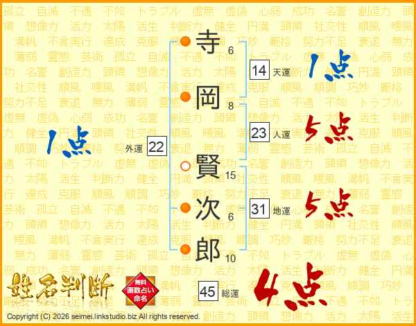 寺岡賢次郎さんの人運は23画の5点!