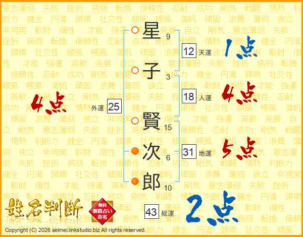 星(9画)子(3画) 賢(15画)次(6画)郎(10画)
