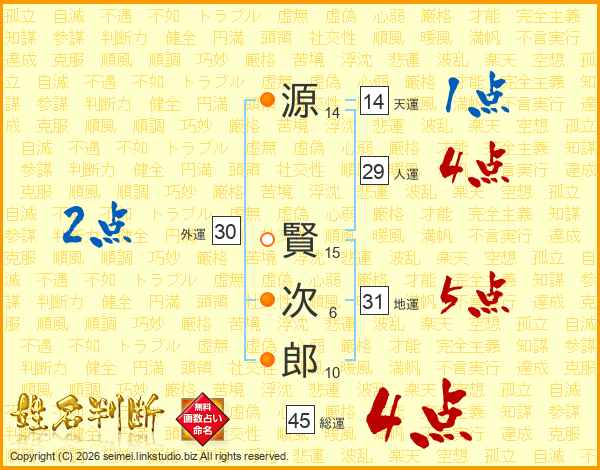 源賢次郎さんの総運は45画の4点!