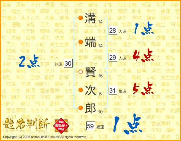 溝(14画)端(14画) 賢(15画)次(6画)郎(10画)