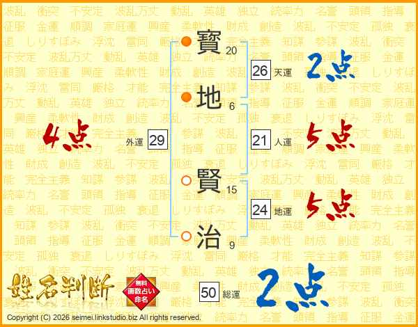 寳地賢治さんの総運は50画の2点!