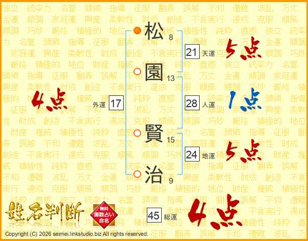 松園賢治さんの総運は45画の4点!