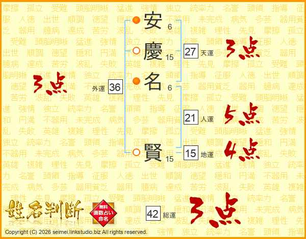 安(6画)慶(15画)名(6画) 賢(15画)