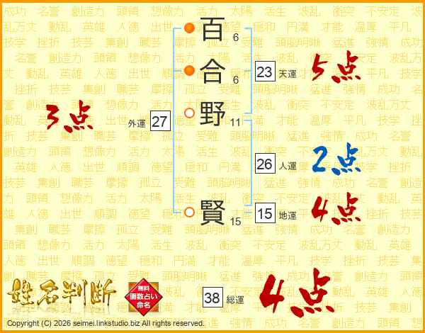 百合野賢さんの総運は38画の4点!