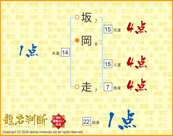 坂岡走さんの人運は15画の4点!