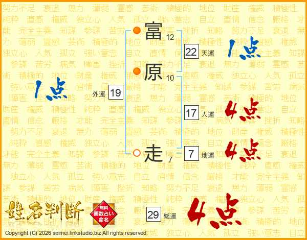 富原走さんの総運は29画の4点!