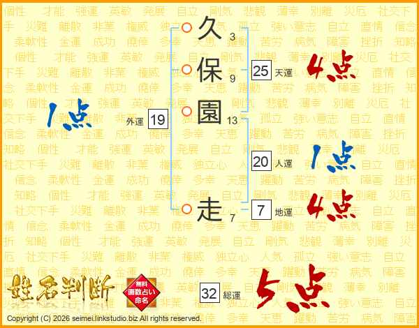 久保園走さんの天運は25画の4点!