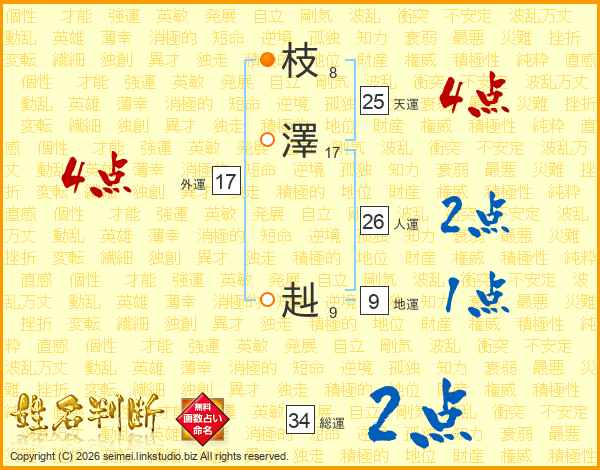 枝澤赳さんの総運は34画の2点!