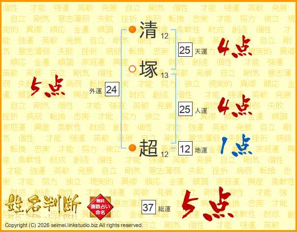 清塚超さんの総運は37画の5点!