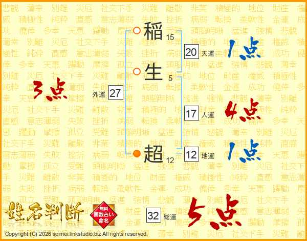 稲生超さんの総運は32画の5点!