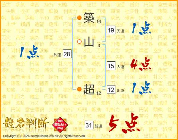 築山超さんの総運は31画の5点!