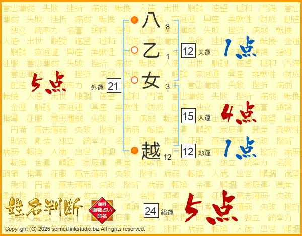 八乙女越さんの外運は21画の5点!
