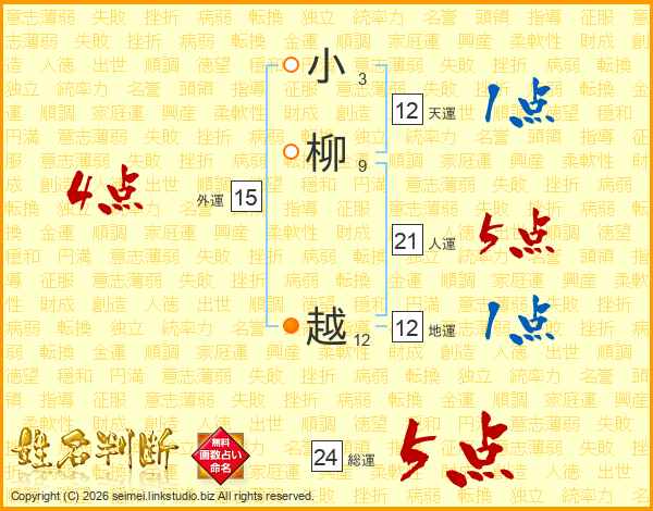 小(3画)柳(9画) 越(12画)