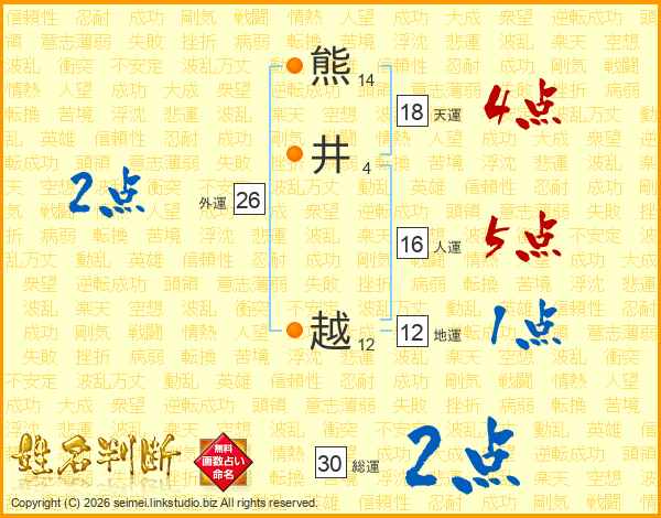 熊井越さんの天運は18画の4点!