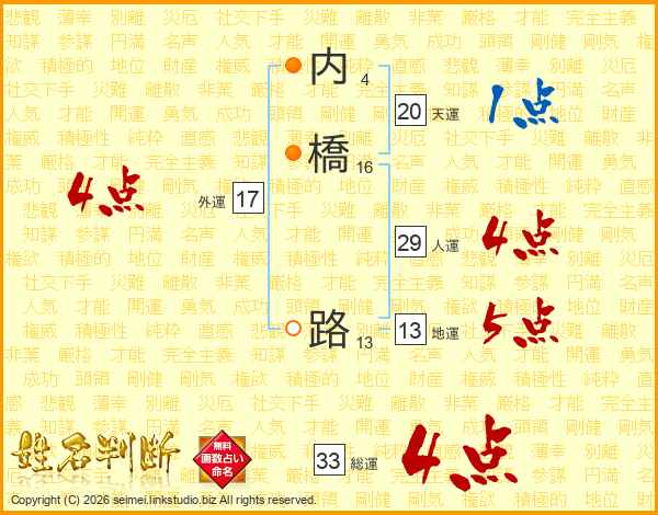 内橋路さんの総運は33画の4点!