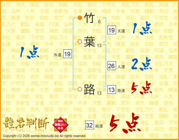 竹葉路さんの総運は32画の5点!