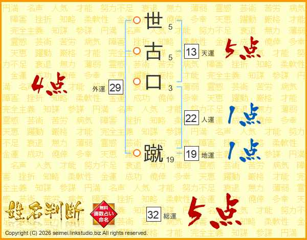世古口蹴さんの総運は32画の5点!