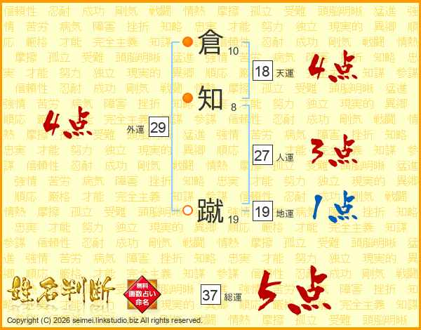 倉知蹴さんの総運は37画の5点!