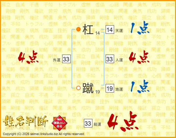 杠蹴さんの総運は33画の4点!