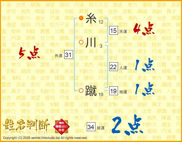 糸川蹴さんの外運は31画の5点!
