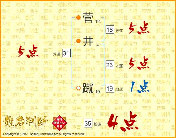 菅井蹴さんの総運は35画の4点!