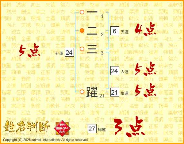 一二三躍さんの外運は24画の5点!