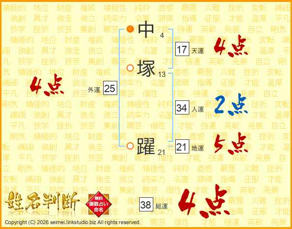 中塚躍さんの総運は38画の4点!