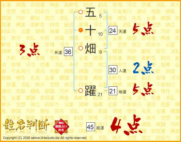 五十畑躍さんの総運は45画の4点!