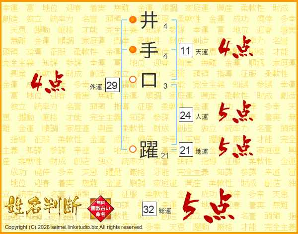 井手口躍さんの総運は32画の5点!