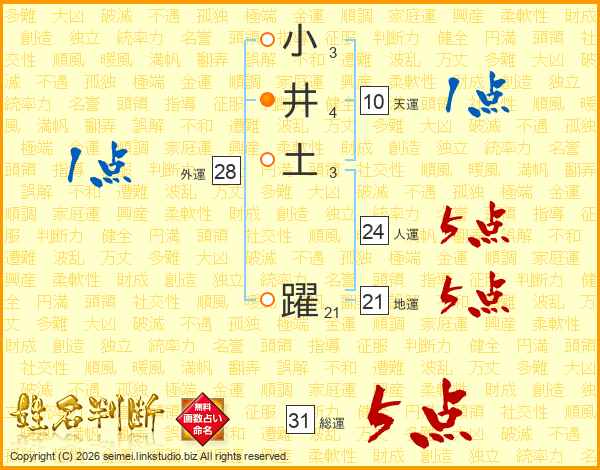 小井土躍さんの総運は31画の5点!